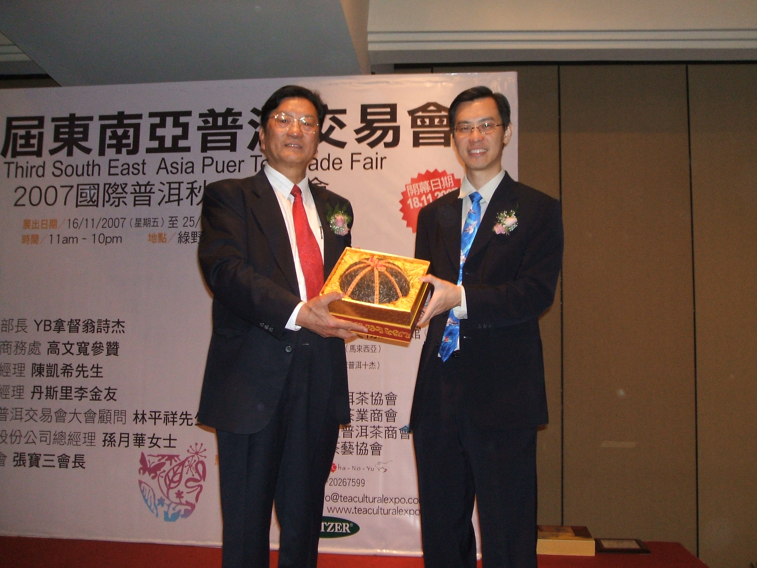 公司董事長(cháng)李惠娟與云南省茶葉協(xié)會(huì )會(huì )長(cháng)張寶三在馬來(lái)西亞考察